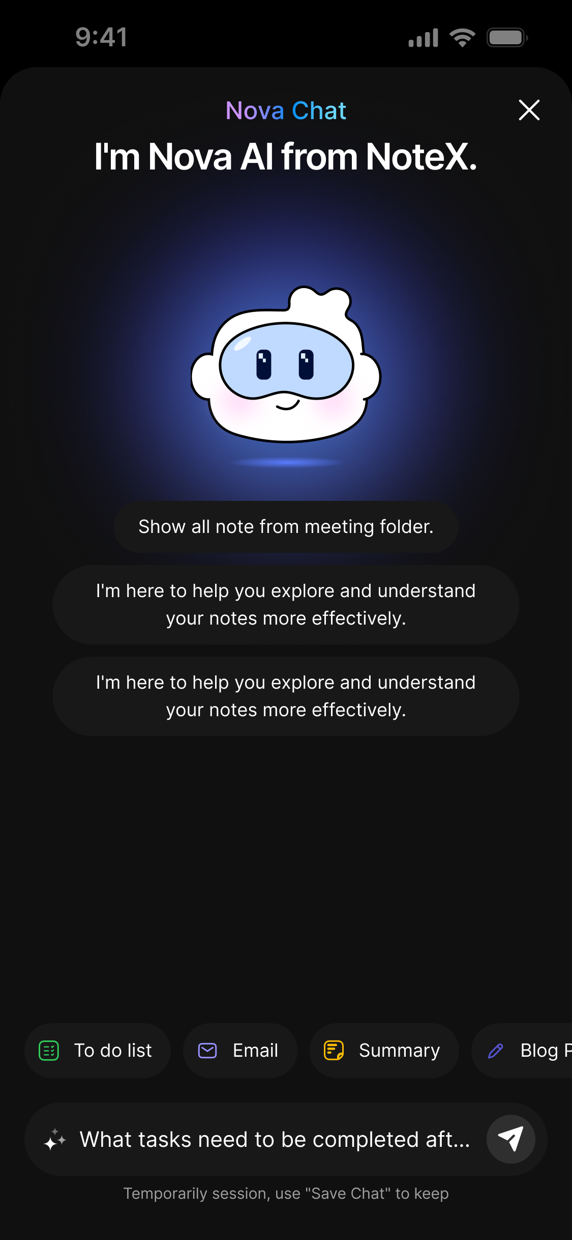 After NoteX has completed generating the note, Nova is ready to help.