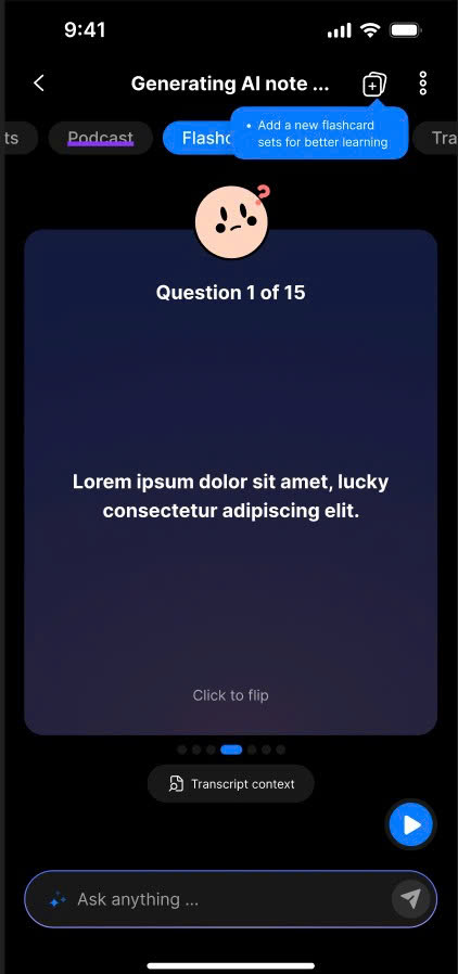 - Wait for the AI to process and generate the flashcard set.